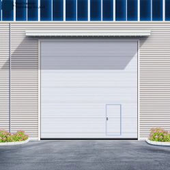 Cửa cuốn gara bằng polyurethane dày 40mm, chống gió, có cửa đi kèm